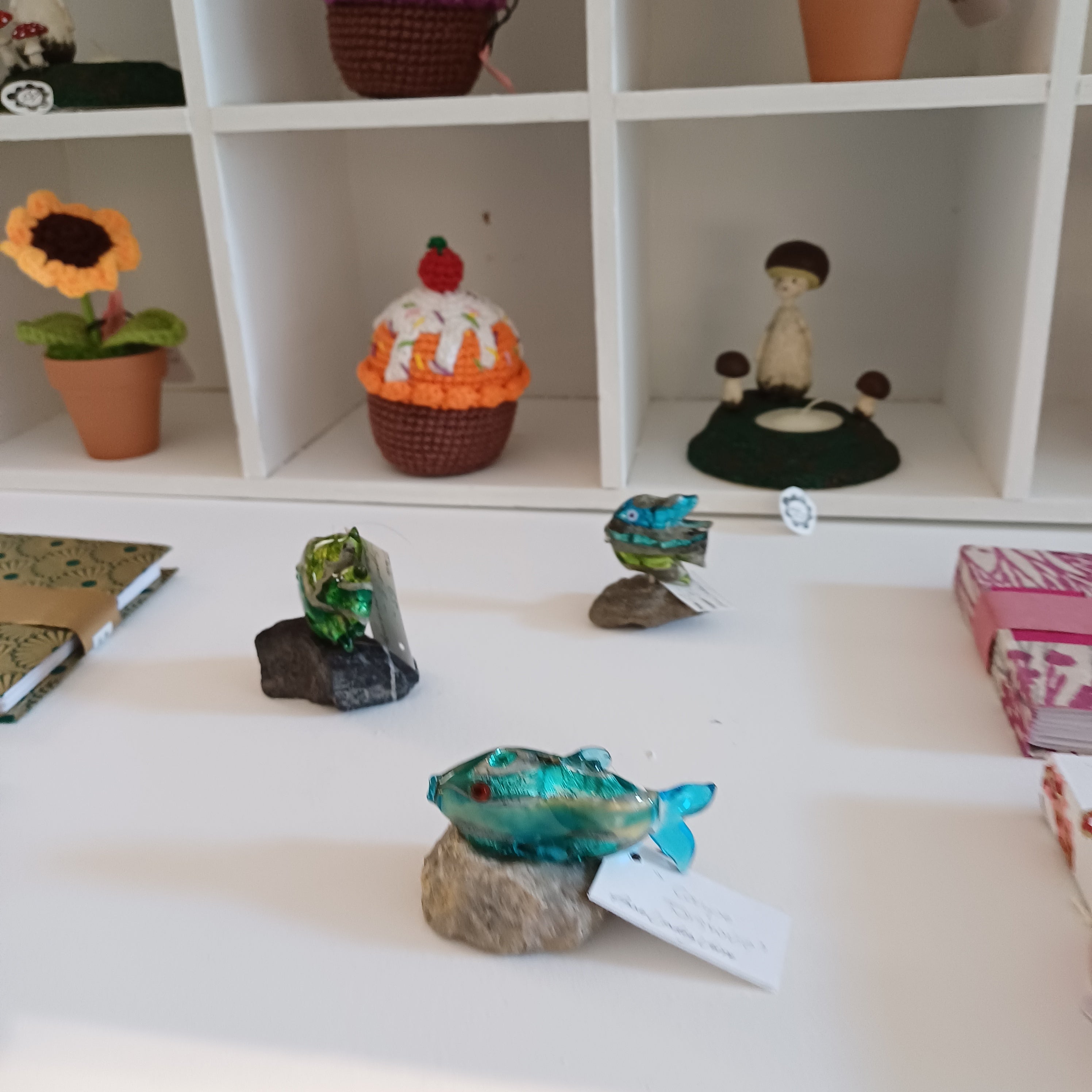 Je travaille le verre au chalumeau et vous propose de découvrir mes perles en verre, sculptures, bijoux verre et argent mais également mes peintures et dessins. J'y présente aussi quelques pièces créées par des Artisans-Créateurs de la région. Les espaces de travail et d'enseignement sont bien sûr toujours présents.