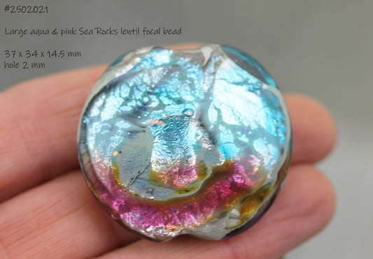 Perle lentille dégradée Sea Rocks bleue turquoise et rose pêche #2502021