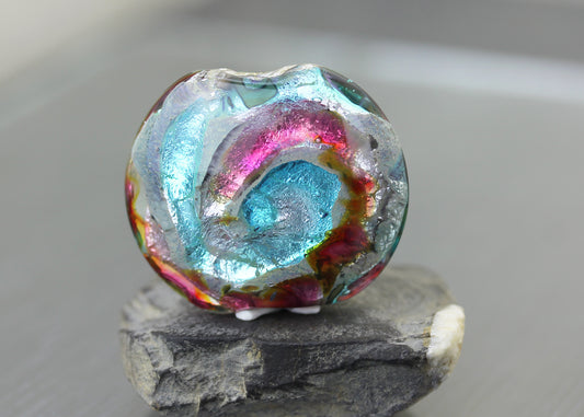 Perle lentille spirale Sea Rocks bleue turquoise et rose pêche #2503708