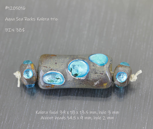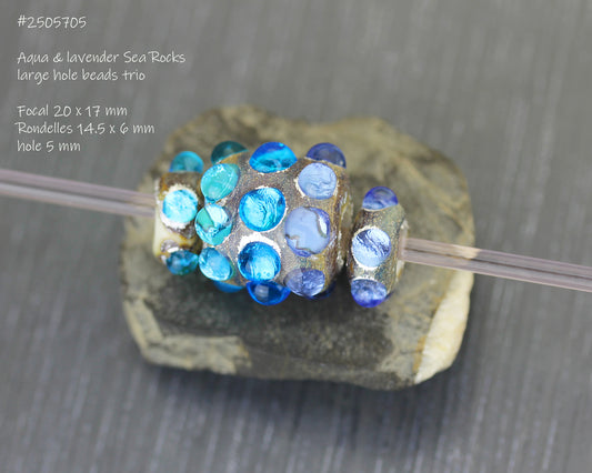 Trio de perles gros trou turquoise & lavande Sea Rocks #2505705