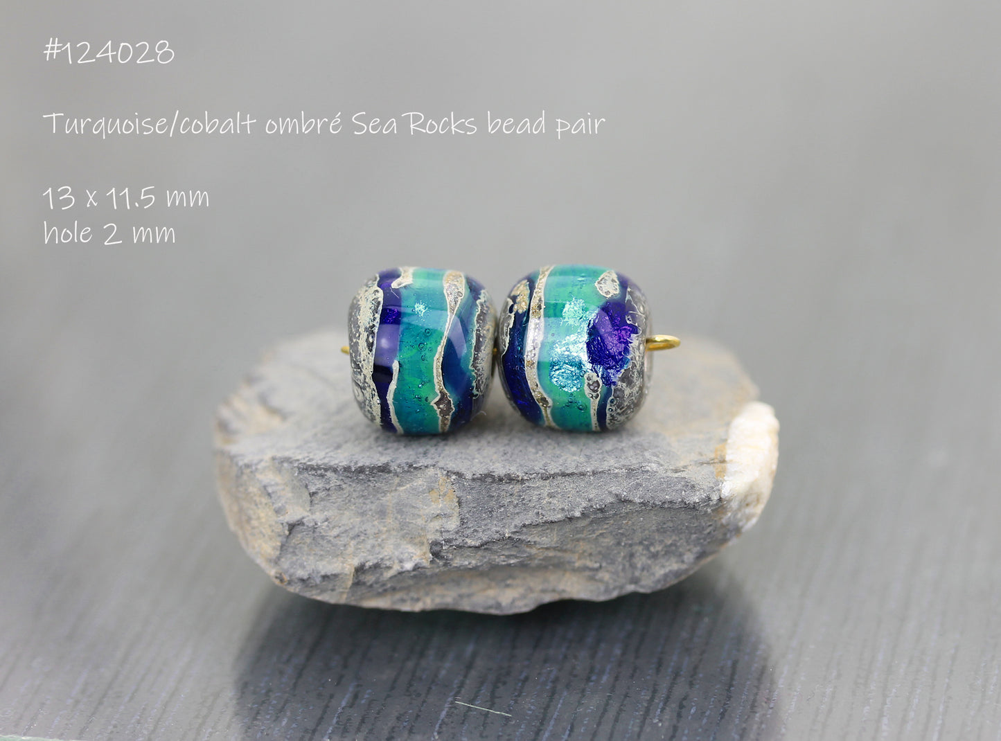 #124028 - Turquoise/Cobalt Sea Rocks ombré bead pair