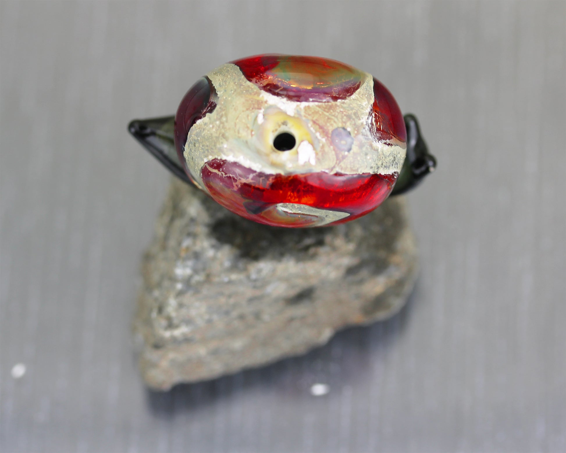 Aqua & green Sea Rocks cat lampwork glass focal Bead #1224016
