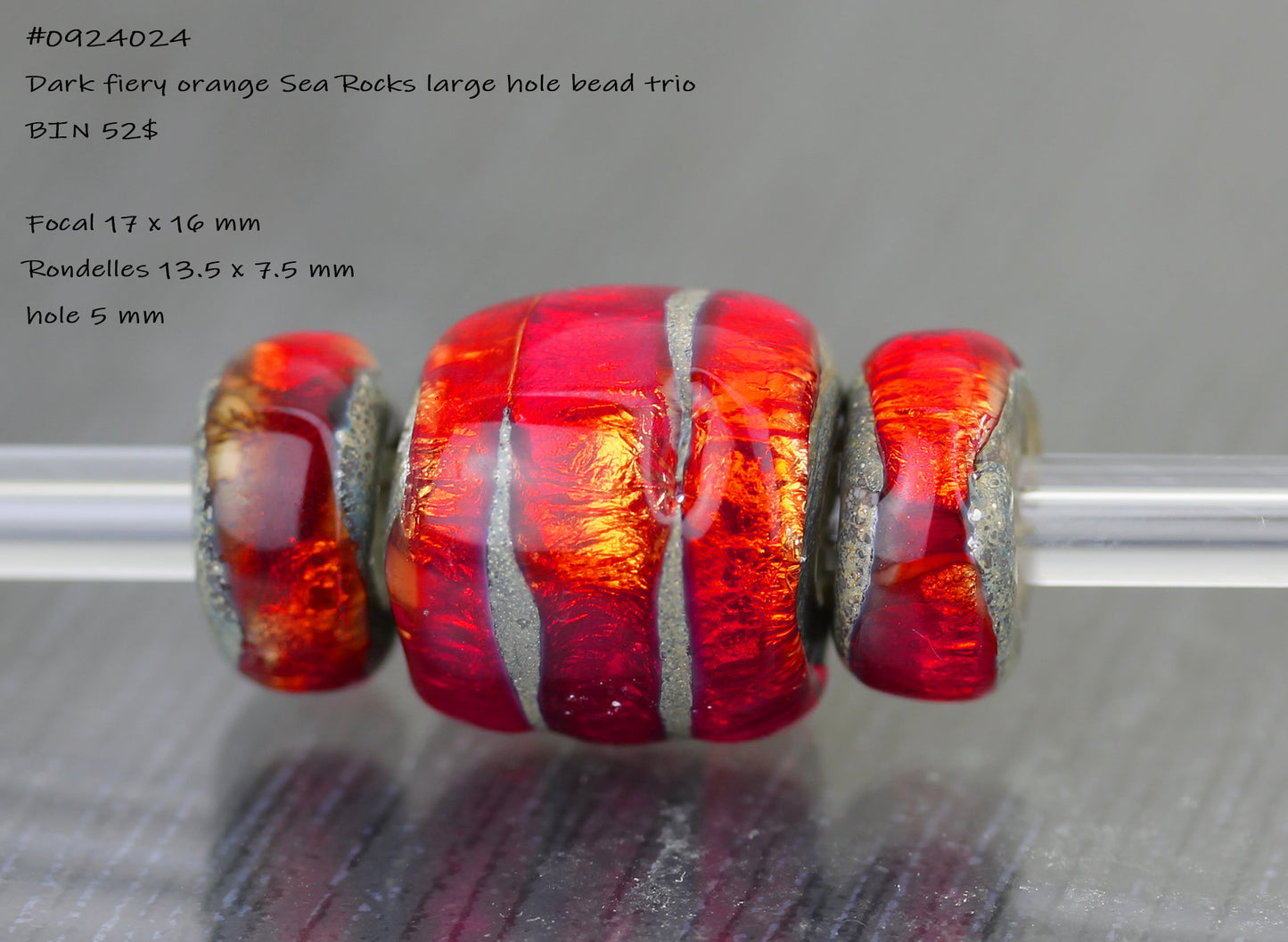 Fiery orange Sea Rocks large hole bead trio #0924024