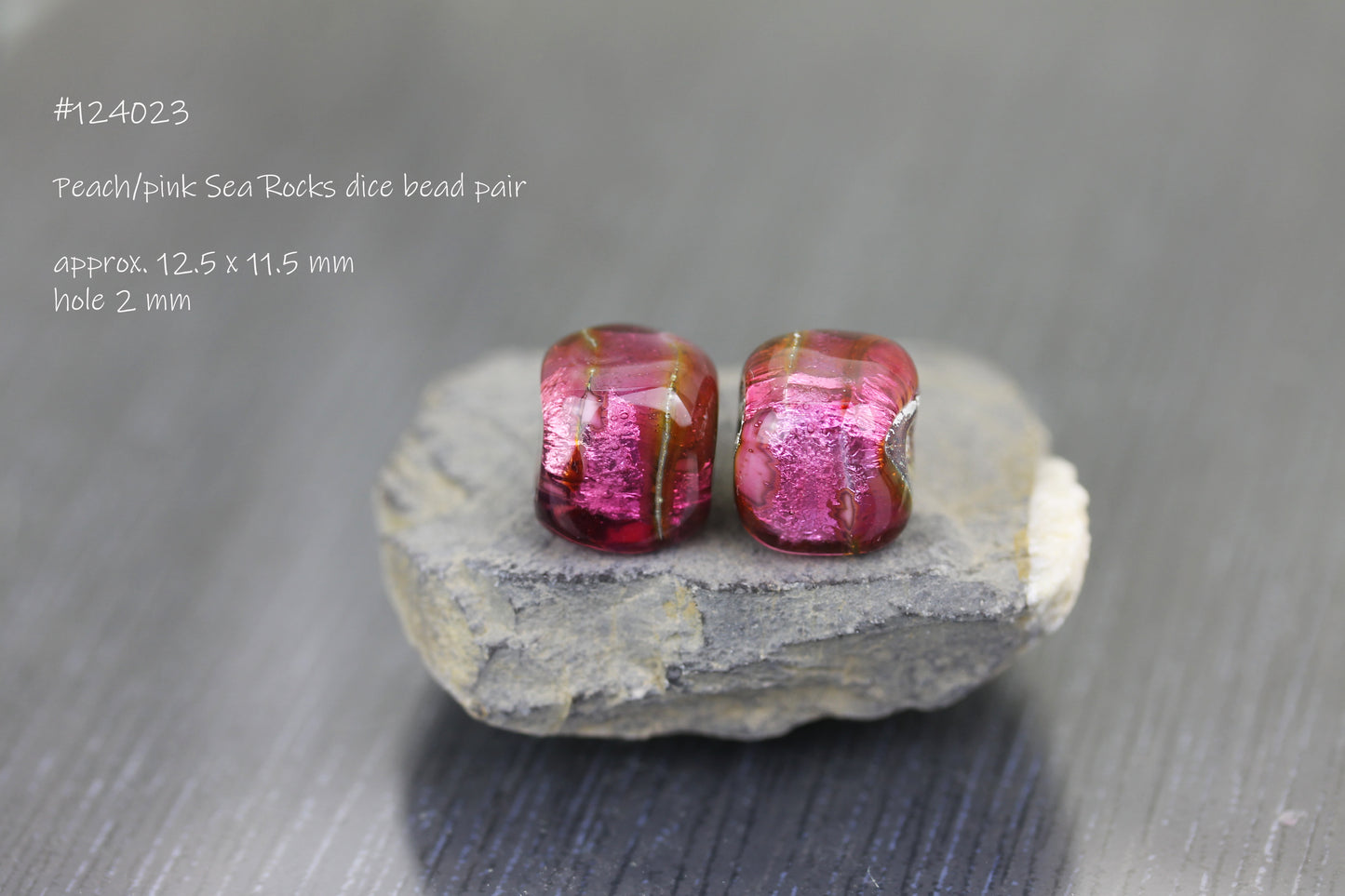 #124023 Pink/peach Sea Rocks dice bead pair