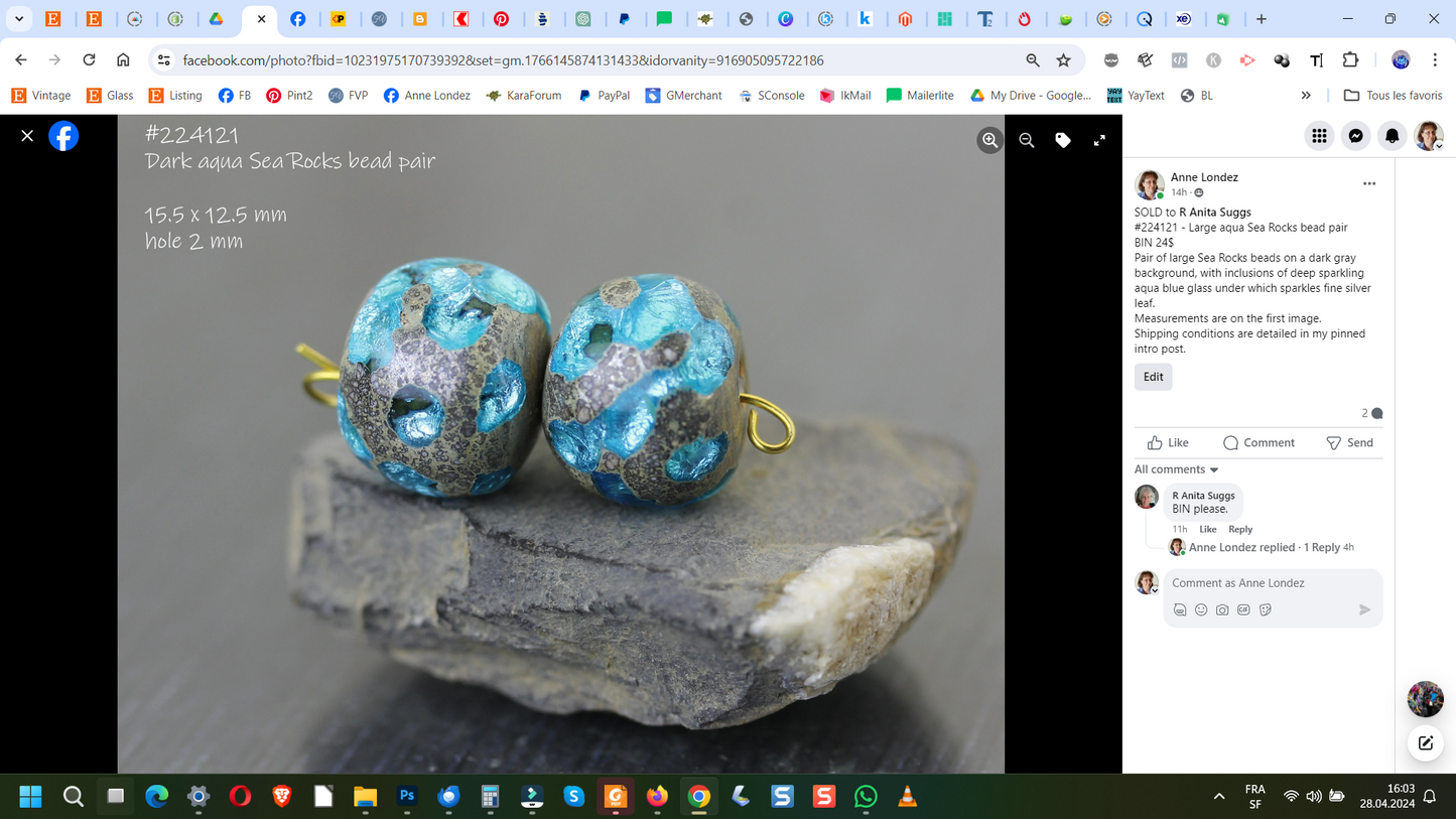 FB Handmade Bead Bazaar Apr 27-29 2024, BIN 24$ Sandy Robbins