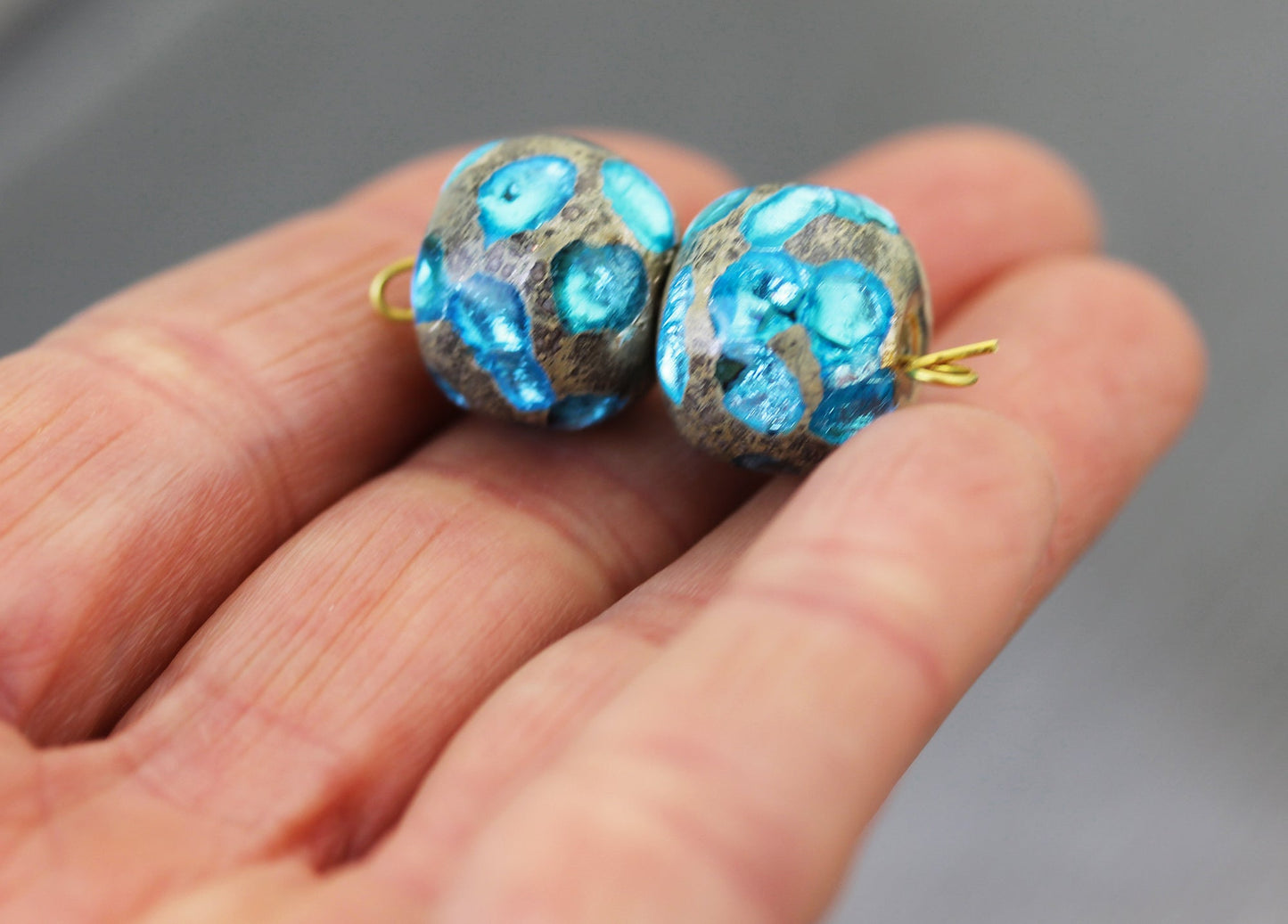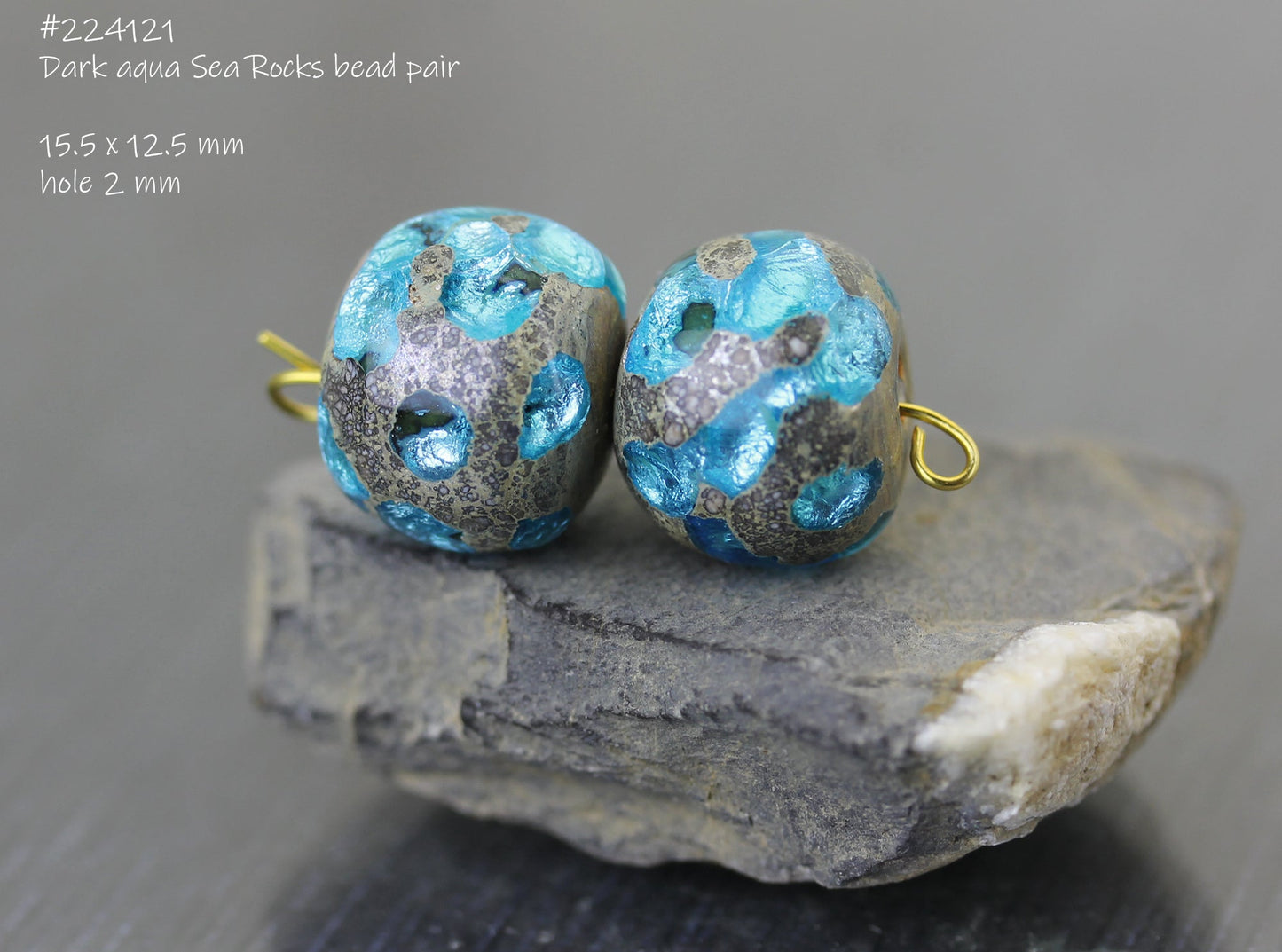 Paire de perles gris foncé et bleu turquoise Sea Rocks #224127
