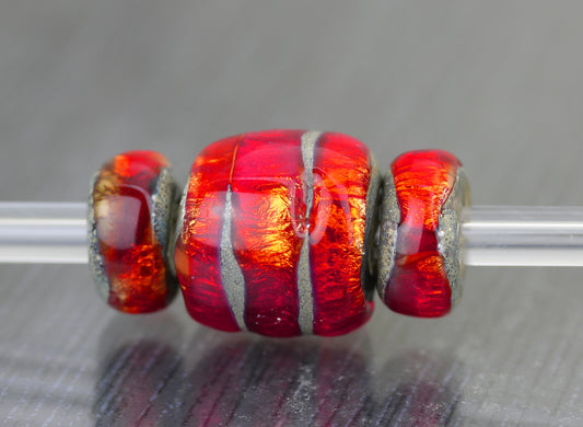 Trio de perles gros trou cubiques rouge feu Sea Rocks #0924024