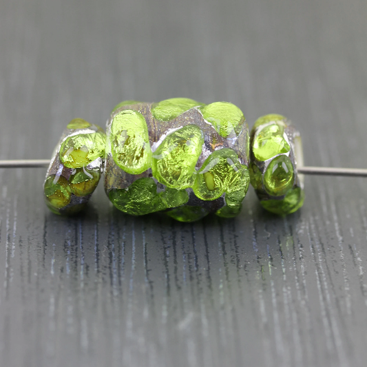 Aqua & grey large hole bead Sea Rocks trio #0924102